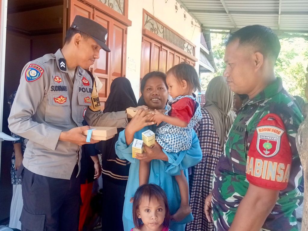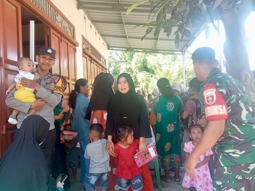 Sinergitas TNI-Polri terlihat saat memantau dan mengamankan kegiatan Posyandu, untuk mendukung upaya Pemerintah memudahkan masyarakat Indonesia dalam memperoleh pelayanan kesehatan ibu dan anak.