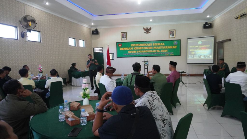 Boyolali // LikeberitaNews – Untuk meningkatkan keeratan hubungan TNI-AD dengan segenap komponen masyarakat guna berpartisipasi pada bidang pertahanan, Kodim 0724/Boyolali menggelar kegiatan Komunikasi Sosial (Komsos) bersama Komponen Masyarakat yang bertempat di Aula Makodim 0724/Boyolali. Jl. Padanaran Desa Tegalmulyo Kecamatan Mojosongo Kabupaten Boyolali. Rabu (26/06/24)