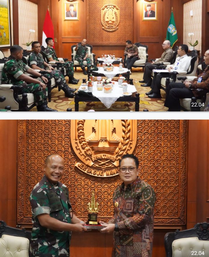 Usai bersilaturahmi ke Pangdam V/Brw, Pangdivif 2 Kostrad beserta rombongan melanjutkan audiensi ke Gubernur Jatim yang bertempat di Jl. Pahlawan, Kec. Bubutan, Kota Surabaya, Jawa Timur.