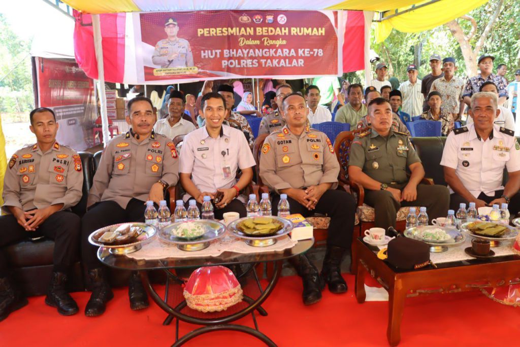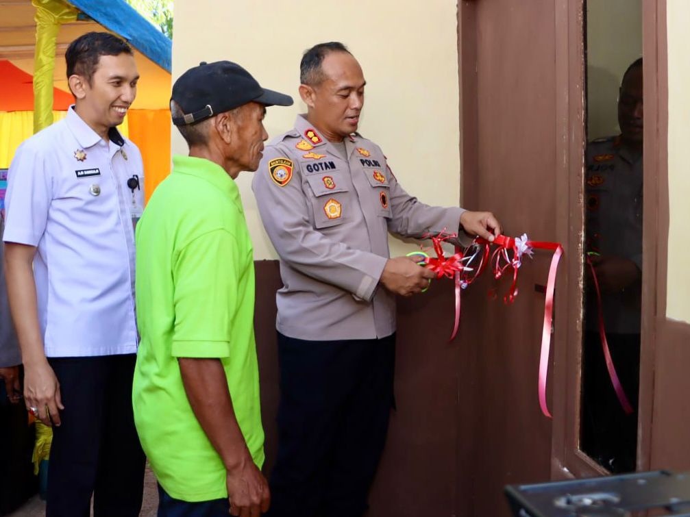 Rumah milik Mone Daeng Tangnga diresmikan secara simbolis oleh bapak Kapolres Takalar AKBP Gotam Hidayat, S.I.K., M.Si, bersama empat rumah lainnya yang juga mendapatkan bantuan bedah rumah dari Polres Takalar. Acara ini ditandai dengan pemotongan pita dan penyerahan bantuan sosial kepada warga. Rabu, 26:06/2024.