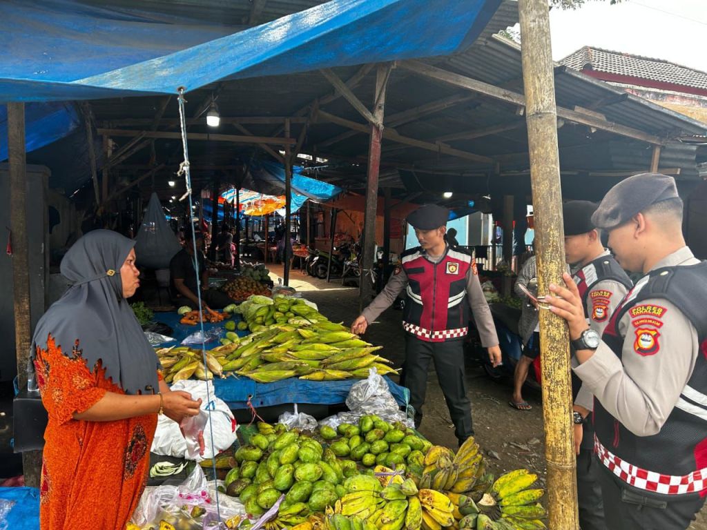 Takalar // LikeberitaNews – Personil Patroli Perintis Presisi Satuan Samapta Polres Takalar melaksanakan patroli dialogis dengan menyambangi pasar tradisional sembari memberikan imbauan Kamtibmas, bertempat di Pasar Tradisional Palleko, Kecamatan Polut, Kabupaten Takalar. Sabtu, 29 Juni 2024 pagi.