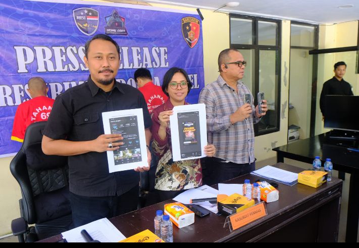 Makassar // LikeberitaNews – Tiga Pelaku judi online berhasil dibekuk patroli siber Ditreskrimsus Polda Sulsel. Ketiganya terdiri Seorang Pemain dan Dua Endorse Judi Online. Hal itu disampaikan Dalam Press Release yang dipimpin Kasubbid Penmas Bid Humas Polda Sulsel AKBP Yerlin Tending Kate, S.Kom,MM. dan Kasubdit Siber Reskrimsus Polda Sulsel Kompol Bayu Wicaksono yang di gelar di Gedung Subdit Siber Reskrimsus Polda Sulsel, Jumat (05/072024)