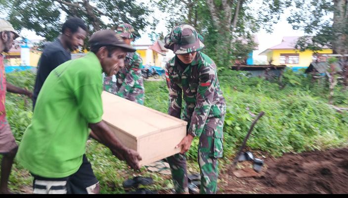 Papua Selatan // LikeberitaNews – Kepedulian TNI terhadap masyarakat di lakukan oleh personel Pos Asgon Satgas Yonif 125/Si’mbisa dengan membantu masyarakat yang sedang mengalami kedukaan akibat salah satu dari anggota keluarganya meninggal di Kampung Amagon, Distrik Assue, Kabupaten Mappi.