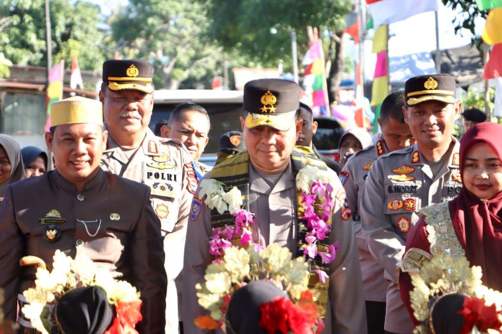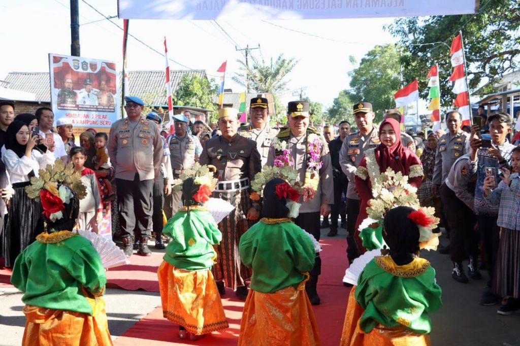 Tim yang di ketuai Kakorbinmas Baharkam Polri, Inspektur Jenderal Polisi Roycke Harry Langie, S.I.K., M.H tiba di Kantor Desa Kampungberu disambut dengan tarian Mappa’dendang dan acara A’ngaru.