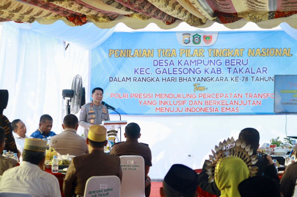 Takalar||Likeberitanews-Kapolres Takalar AKBP Gotam Hidayat, SIK, M.Si bersama Forkopimda Takalar, dan Forkopimcam Galesong dampingi Tim Penilaian lomba 3 pilar Desa/Kelurahan tingkat Mabes Polri dalam rangka HUT Bhayangkara ke-78 Tahun 2024. Rabu, 17 Juli 2024.